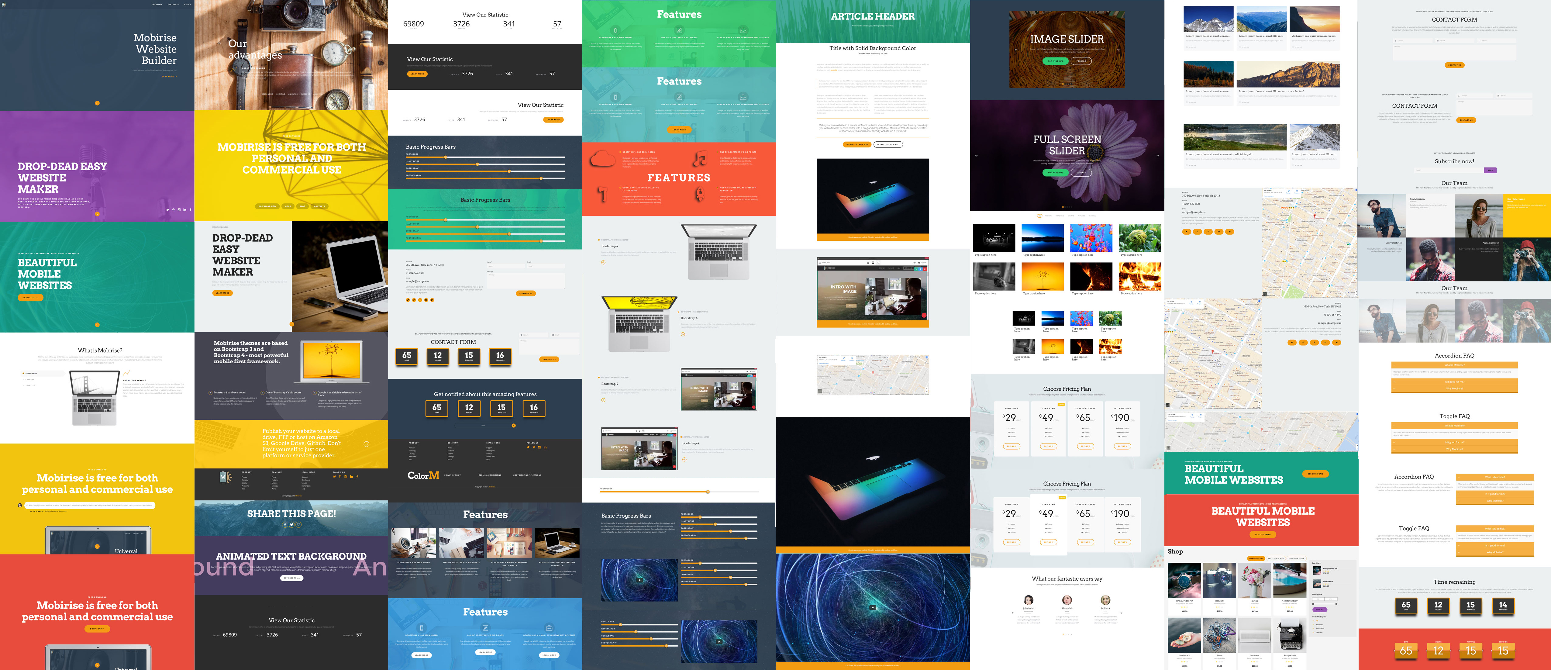 Mobirise has provided for website developers a growing library of modern blocks which can be used either partially or in full for every website developed through the builder.